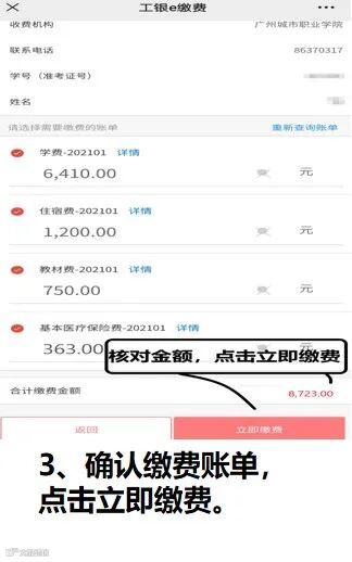 所缴费用均采用中国工商银行e缴费系统通过微信支付的方式进行。
