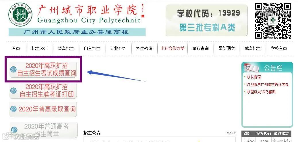 考生如对自己的成绩有异议,请持本人身份证、高职扩招自主招生准考证原件,于10月21日12:00前到我院教务处反映,反映情况需本人提供书面材料并填写《广州城市职业学院2020年高职扩招专项行动考试成绩查分申请表 》(识别下面二维码),否则将不予受理。
