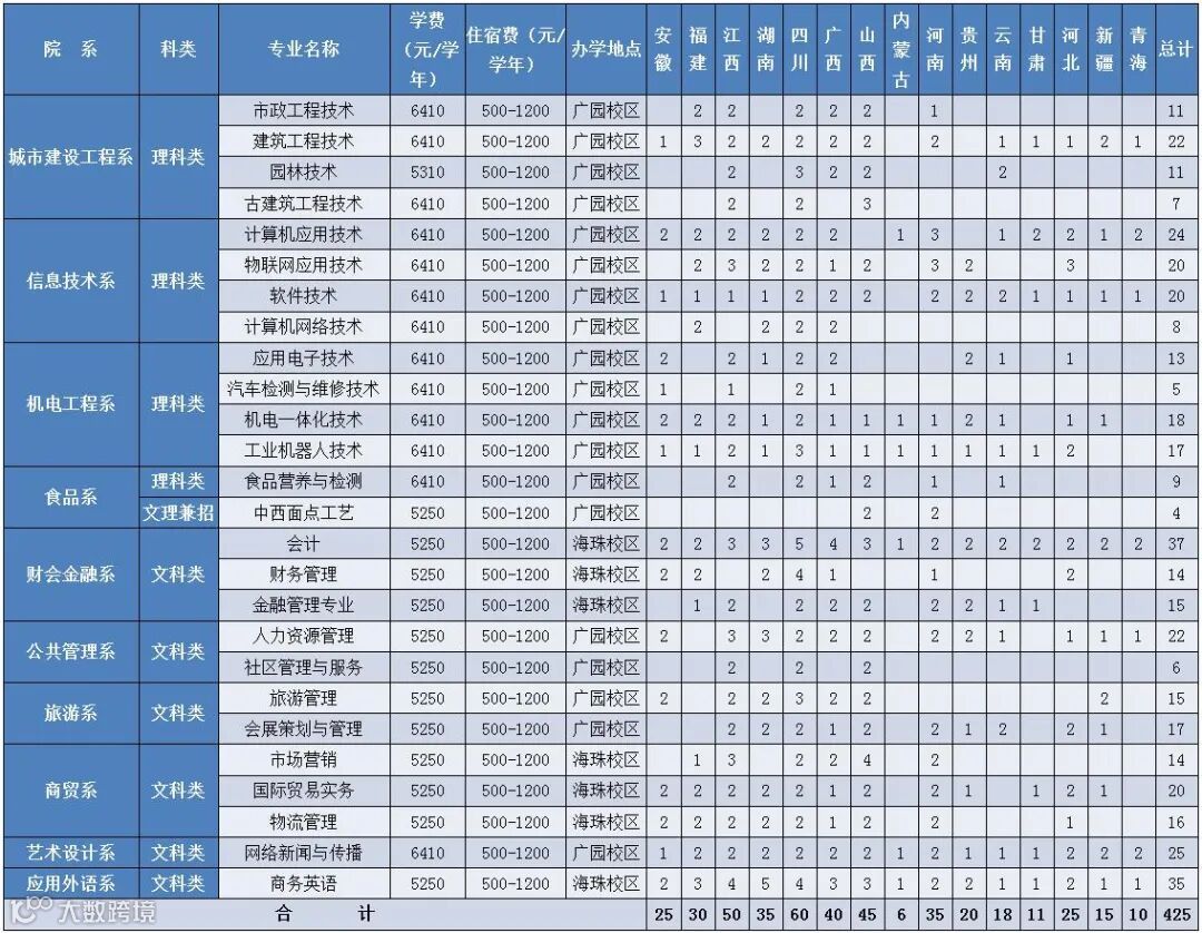 广州城市职业学院2020年普通高考省外招生计划
