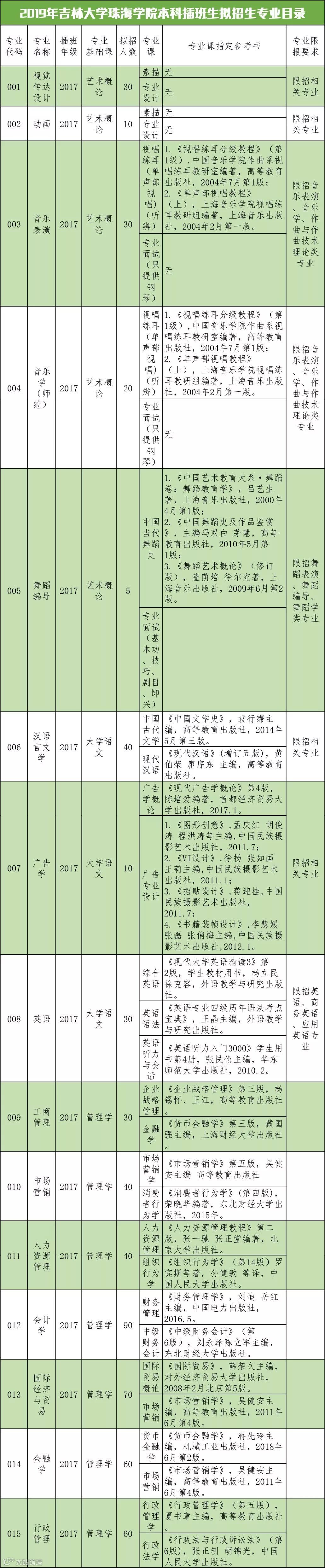 1、我校2019年拟招生专业数为15个,招生计划数为800人,具体以广东省招生办公室公布的《广东省普通高等学校2019年本科插班生招生专业目录》为准。(广东 高 考 在 线 微 信 平 台 汇总)