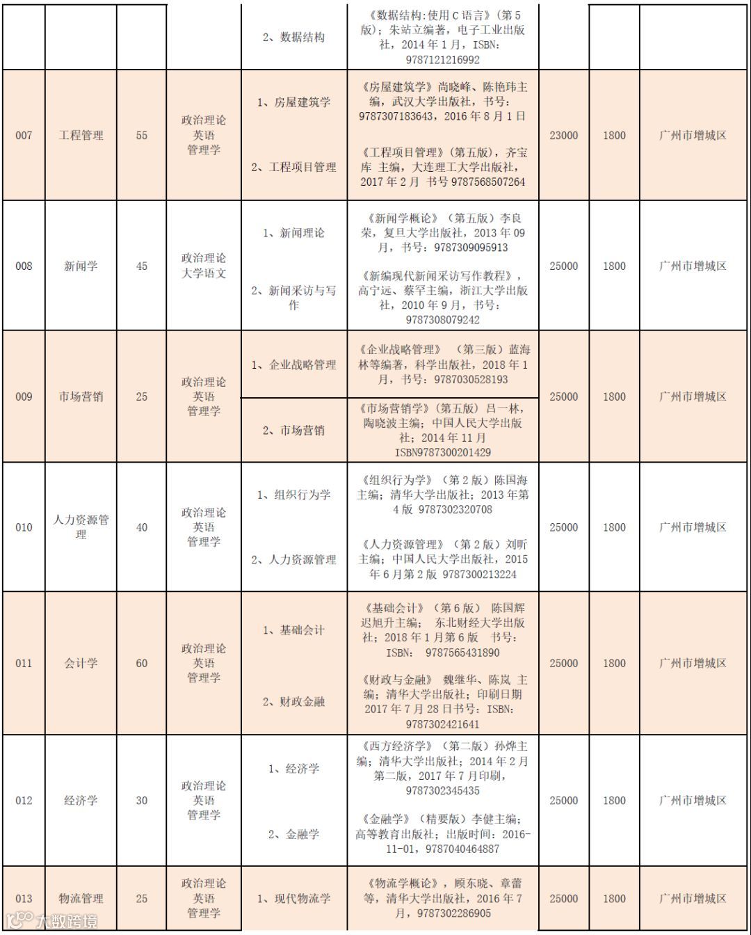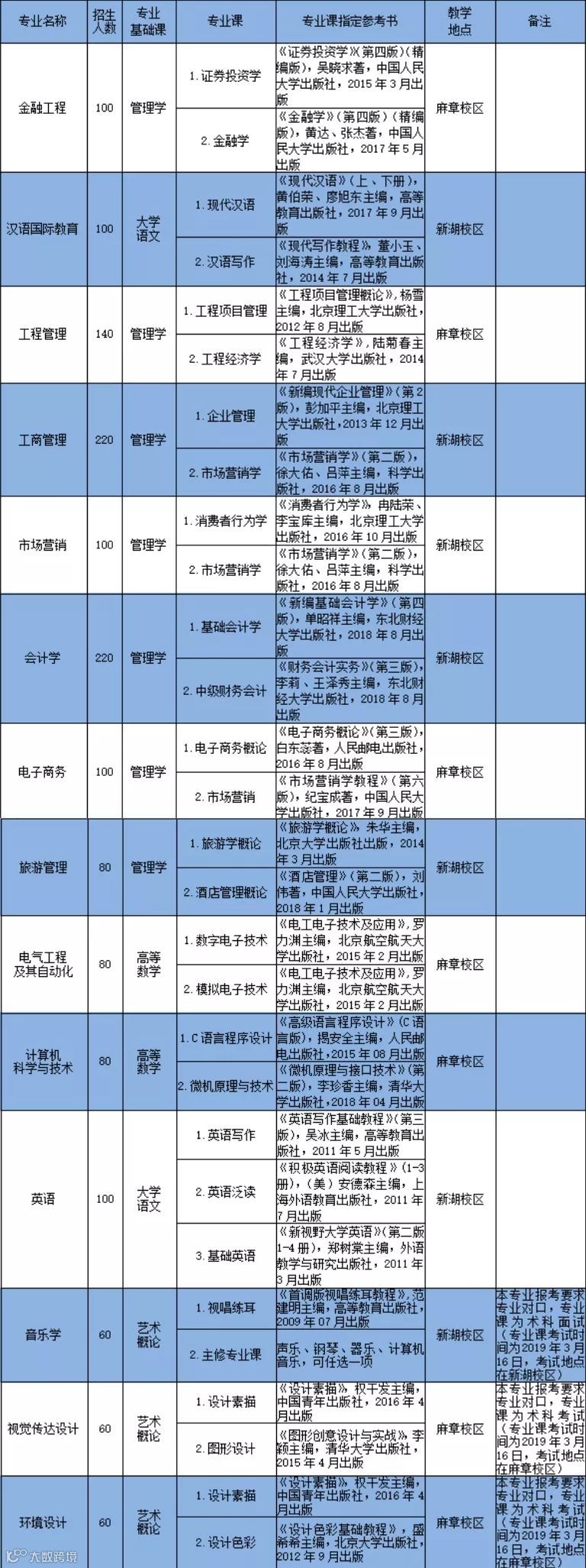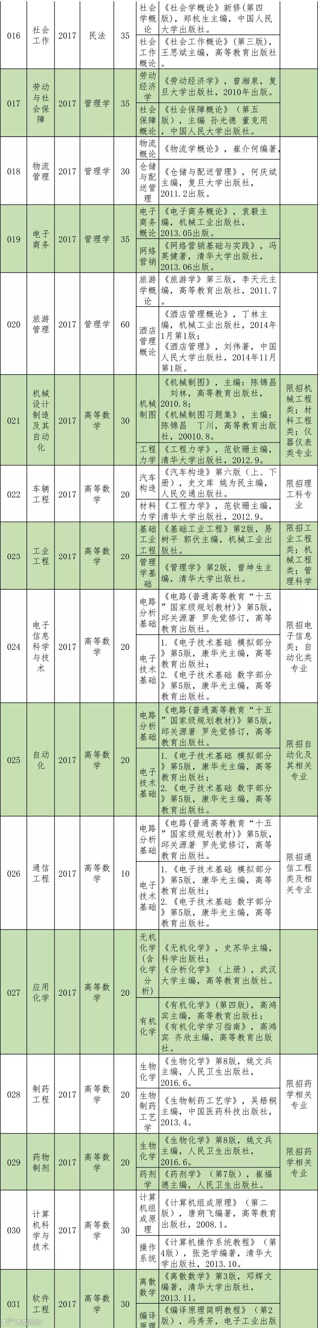 二、2019年各招生专业专业课及参考书目