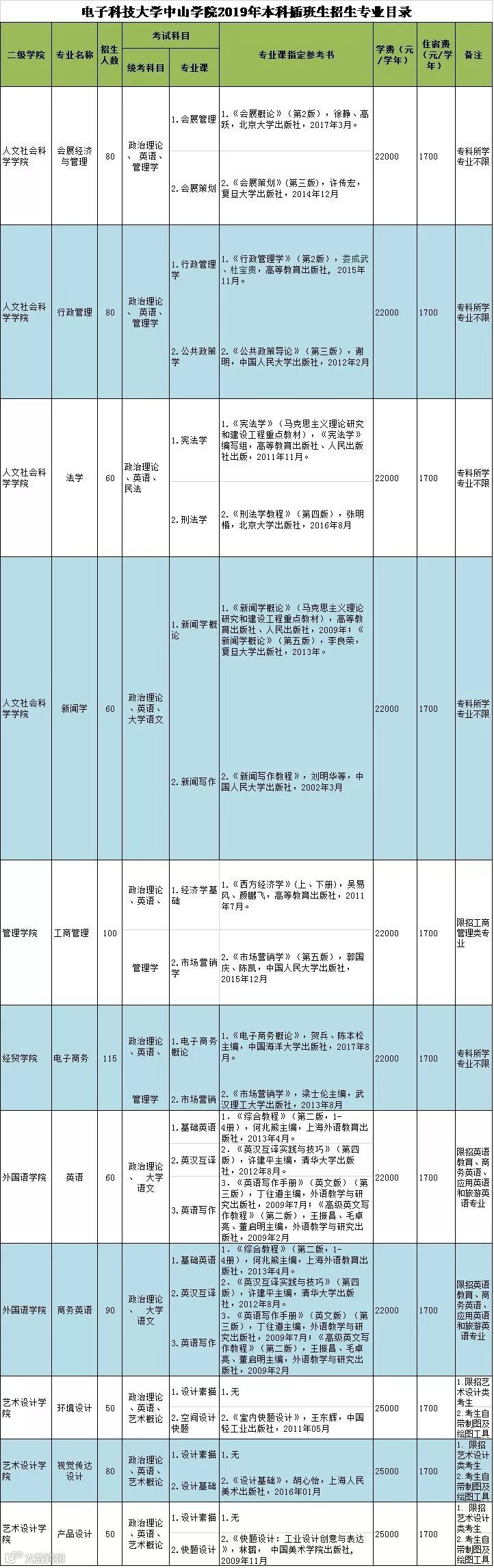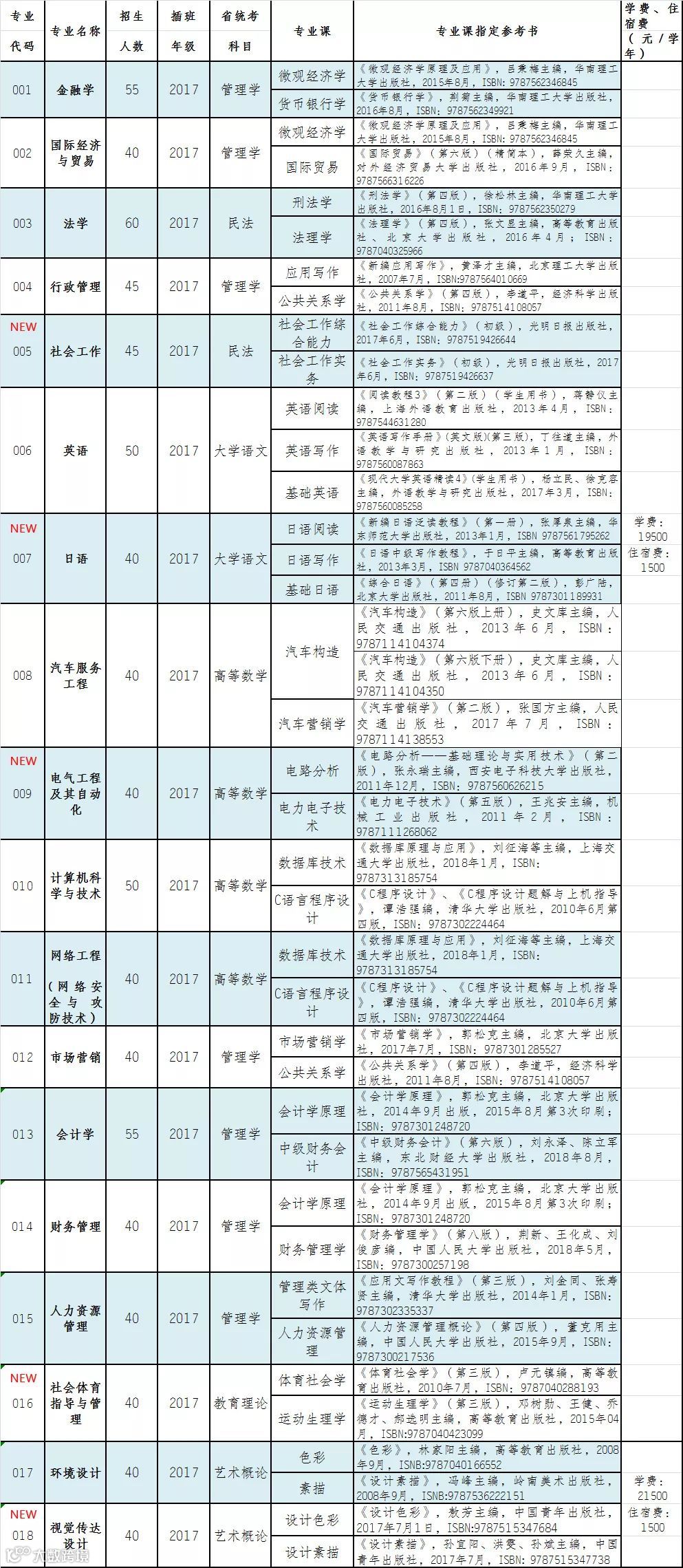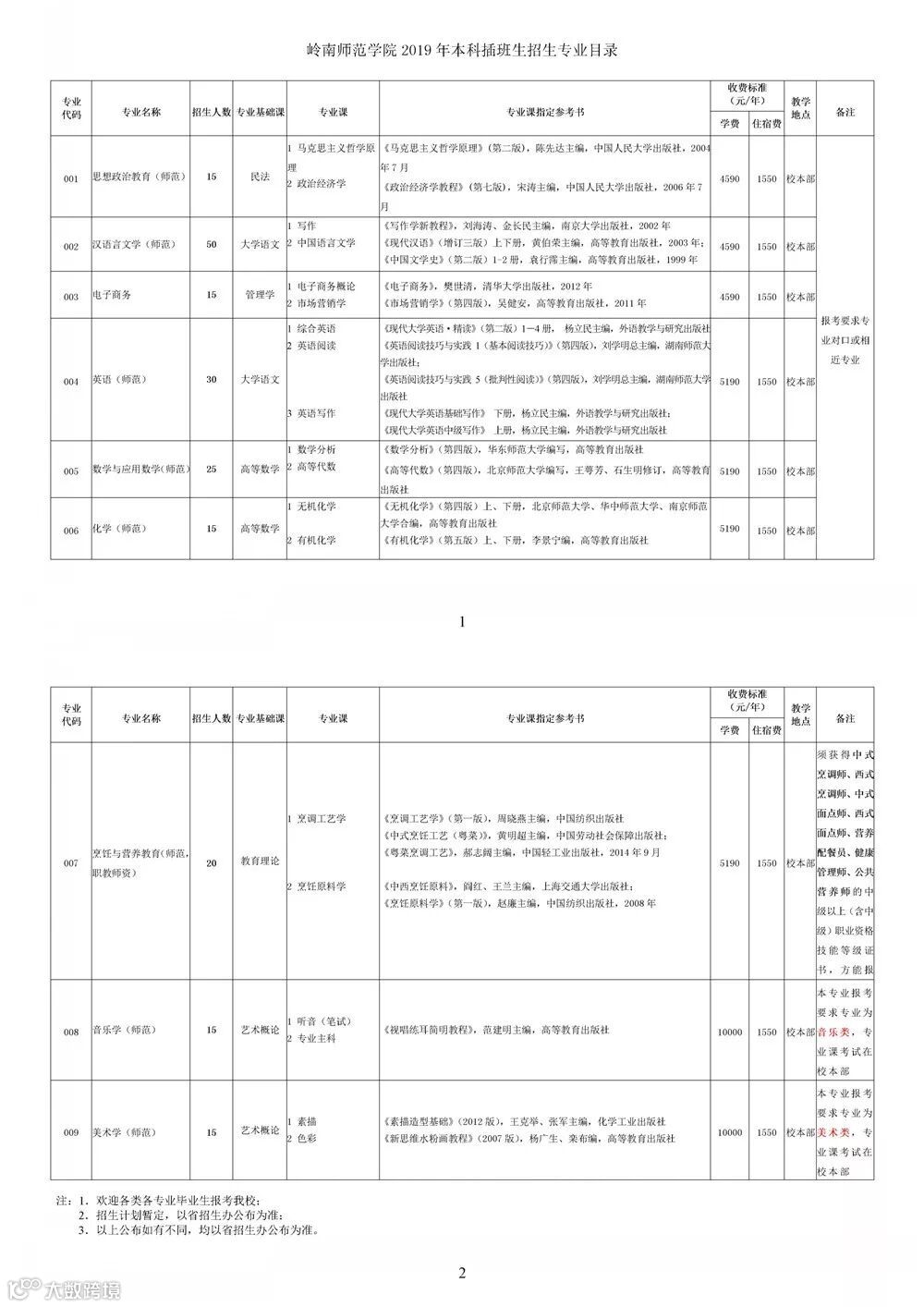 注:1.以上信息仅供参考,以广东省招生办公室公布的《广东省普通高等学校2019年本科插班生招生专业目录》为准;