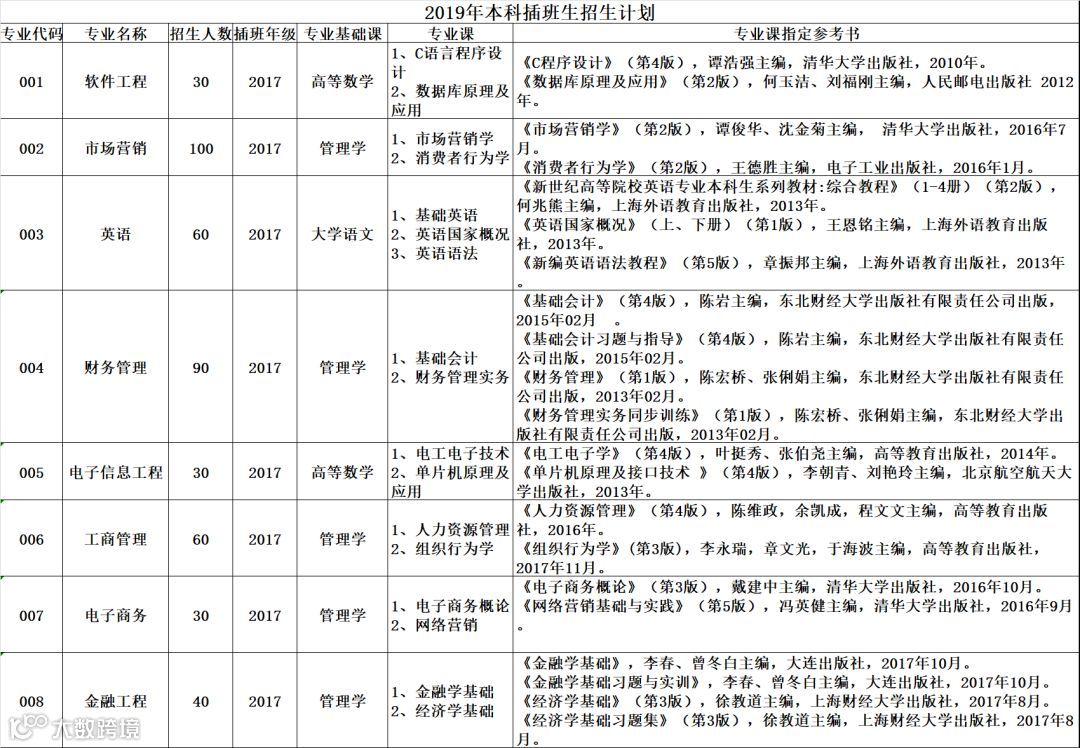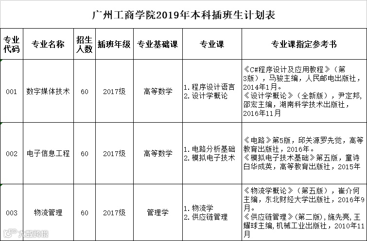 注:招生专业及计划数仅供参考,以广东省教育考试院编制的《广东省普通高等学校2019年本科插班生招生考试大纲及专业目录》为准。