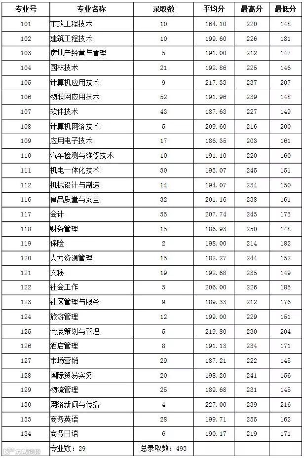广州城市职业学院2017年依据学考成绩各专业录取分数一览表(理科)