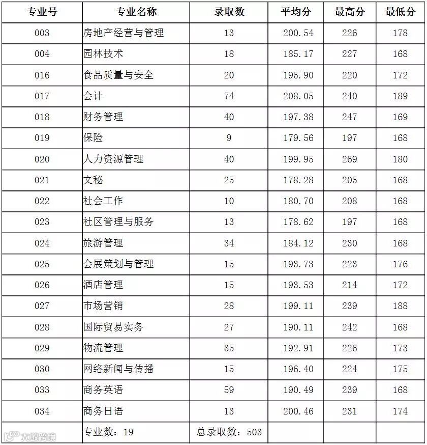 广州城市职业学院2017年依据学考成绩各专业录取分数一览表(文科)