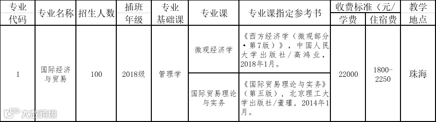 北京理工大学珠海学院2020年招收“国际经济与贸易”专业本科插班生100名,根据《广东省 2020 年普通高等学校本科插班生招生工作规定》制定本简章。