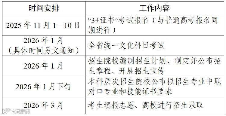 现就做好我省2026年普通高校招收中等职业学校毕业生“3+证书”考试招生有关工作通知如下: