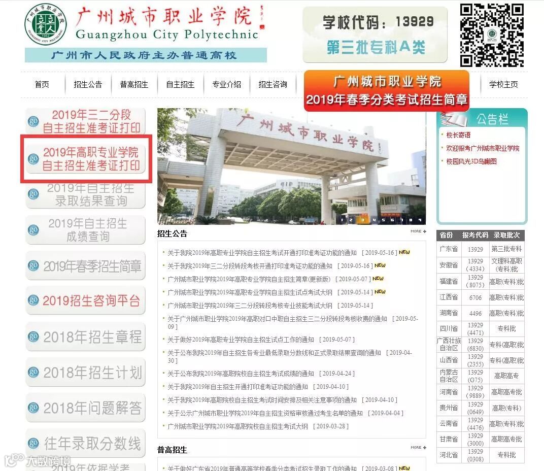我院已开通高职专业学院自主招生打印准考证功能,请参加我院自主招生考试的考生登录广州城市职业学院招生网首页。点击“广州城市职业学院2019年高职专业学院自主招生考试准考证打印系统”,根据指引打印准考证。 (点击下方“阅读原文”了解详情)