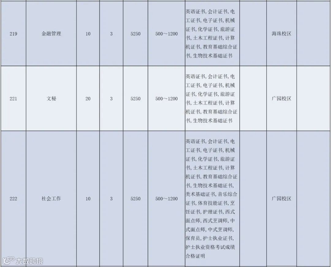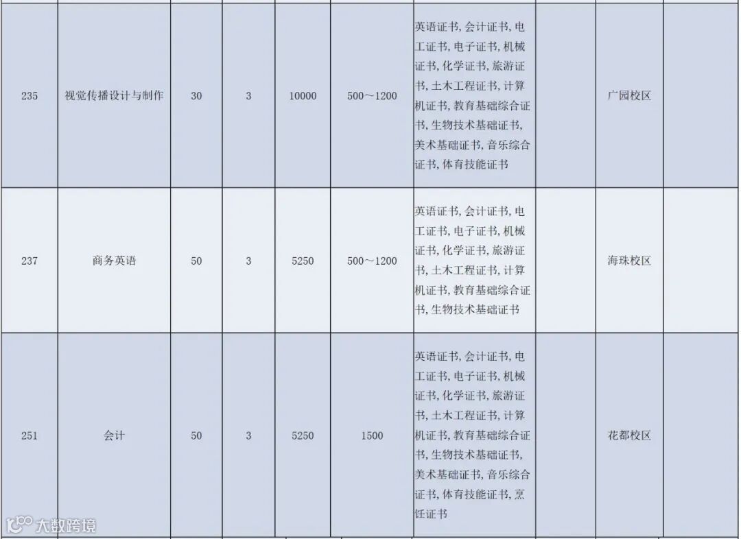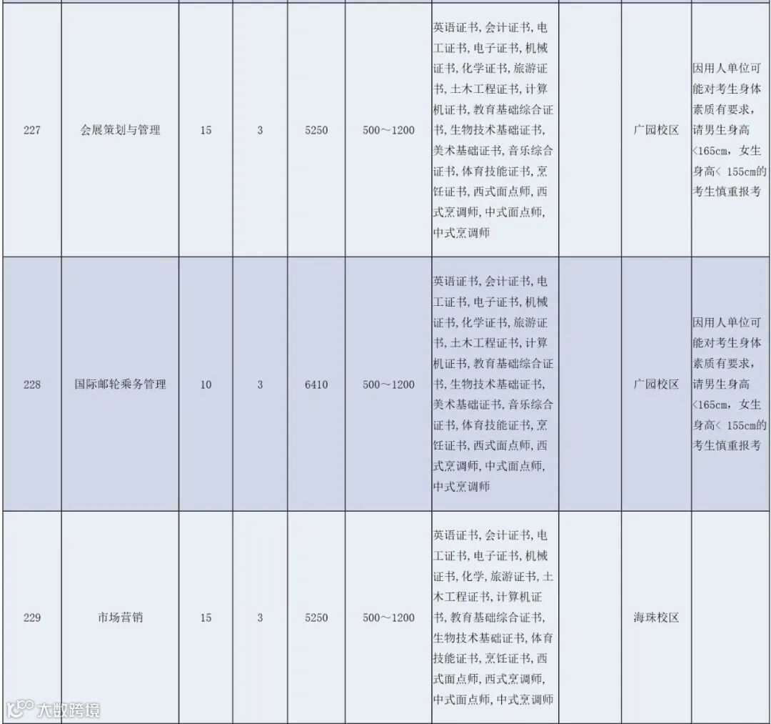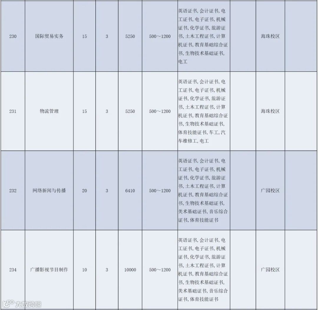 注:以上最终招生专业及计划以广东省教育考生院公布为准。