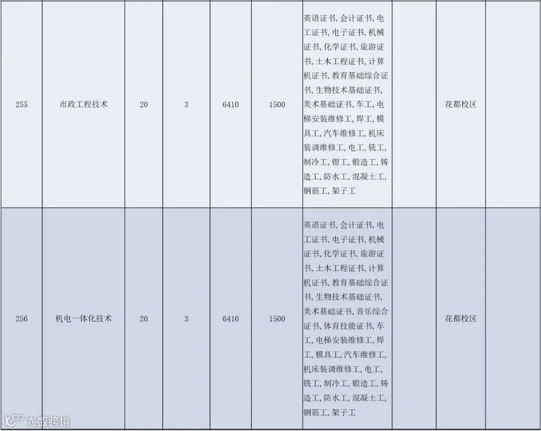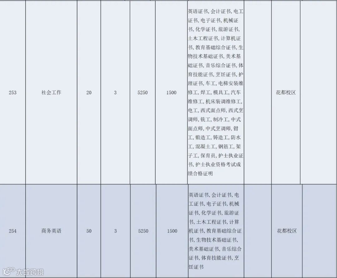 考生需取得至少一种相应的专业技能课程证书