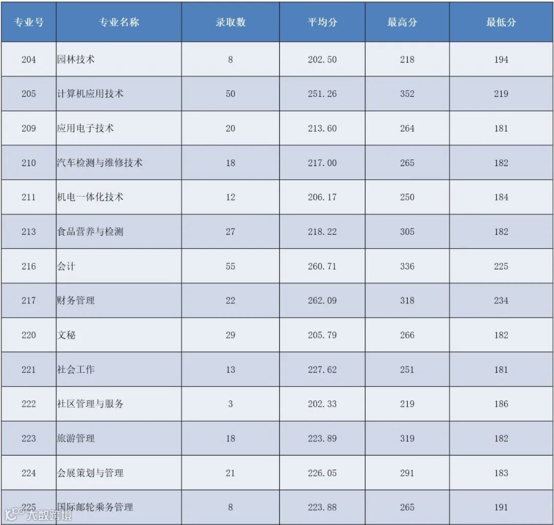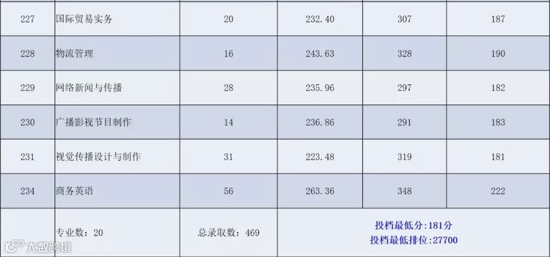 各专业投档录取情况统计表