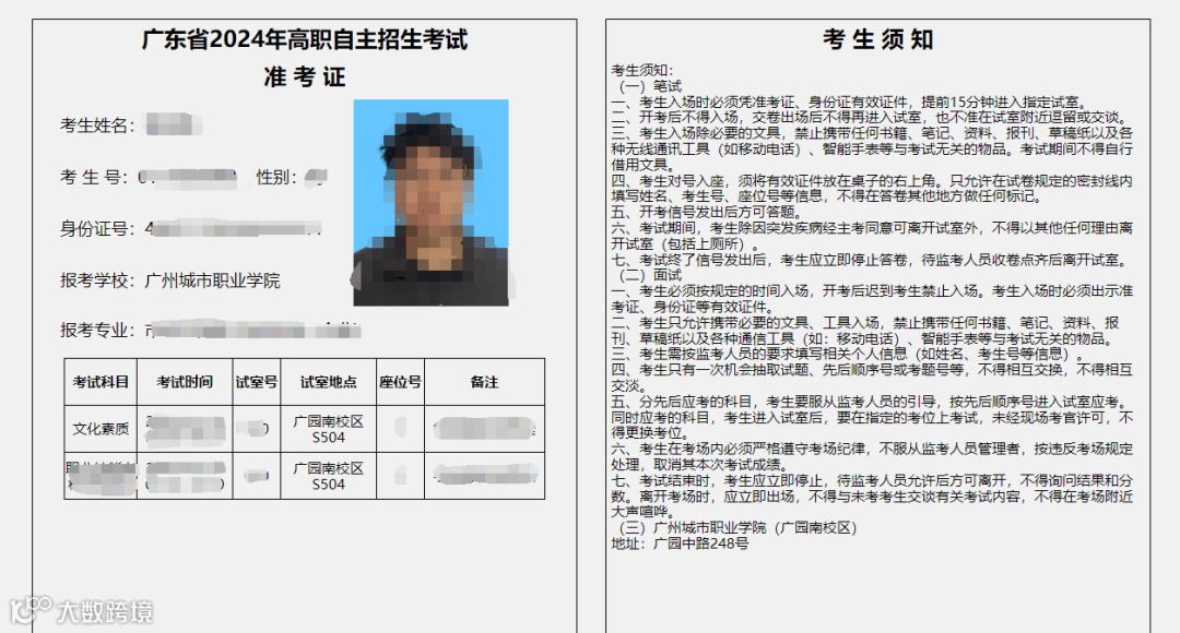 2024年5月15-17日考生凭高考报名号及密码自行登录“广东省2024年高职院校自主招生网上报名系统”(下称“网上报名系统”,网址:https://pg.eeagd.edu.cn/gzks/)打印准考证。