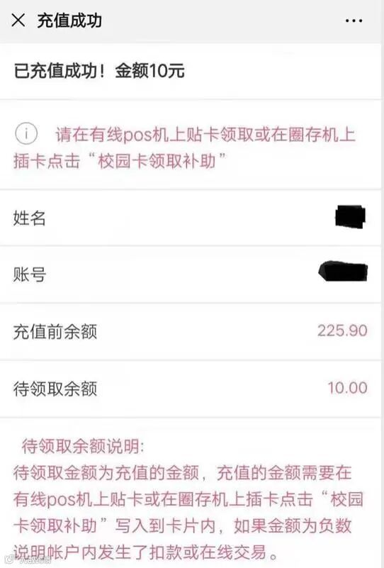 系统提示,充值额进入“待领取余额”,也就是“过渡余额”。