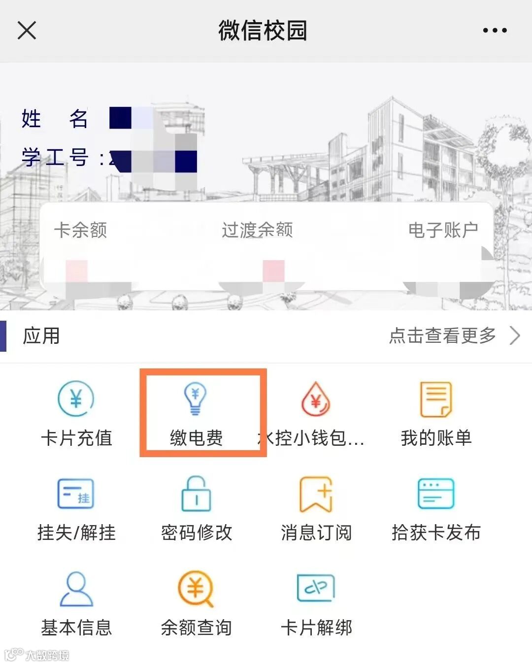 新校区学生宿舍电费充值功能也已整合至校园一卡通中,学生可在学校企业微信——工作台——校园一卡通登陆充值。
