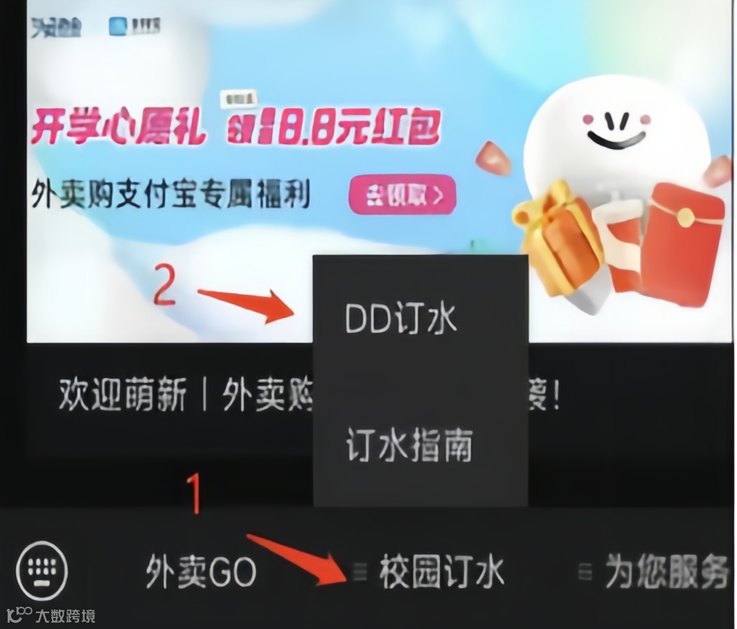 关注后进入公众号,打开工具栏“校园订水”→ “DD订水”。
