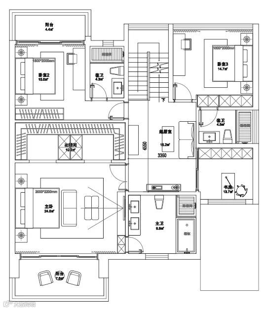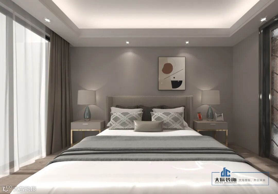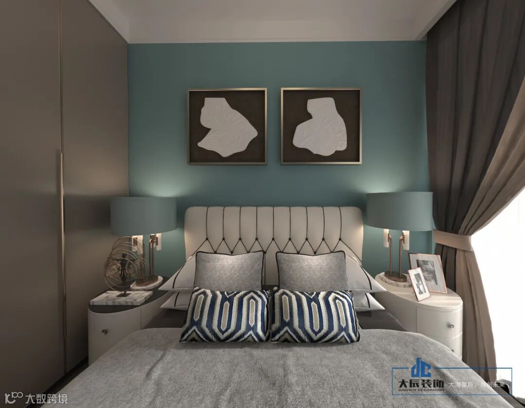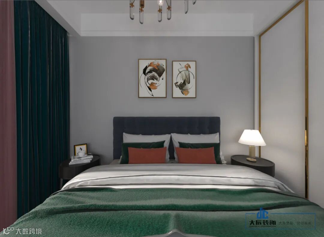 主卧同样以低饱和度色彩为主、高饱和度装饰营造空间质感,带有自然系色彩, 注重简单舒适的大气装修,以创意软装点缀 ,打造出极简轻奢的高雅生活风。有生活,有温度。