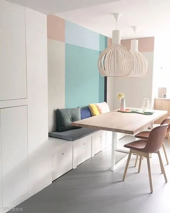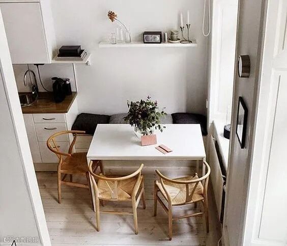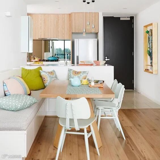 因空间狭小,大部分家庭会选择把餐桌放在墙角,以不占用过多的其他空间。