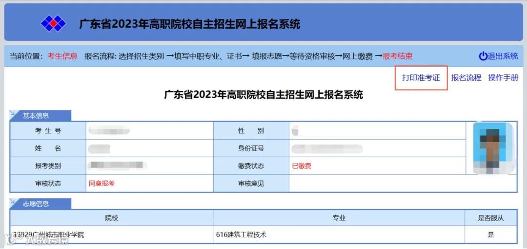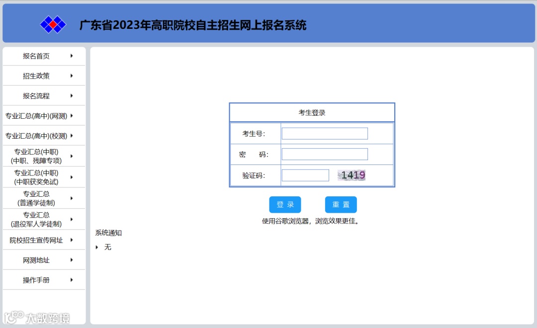 广东省2023年高职院校自主招生网上报名系统