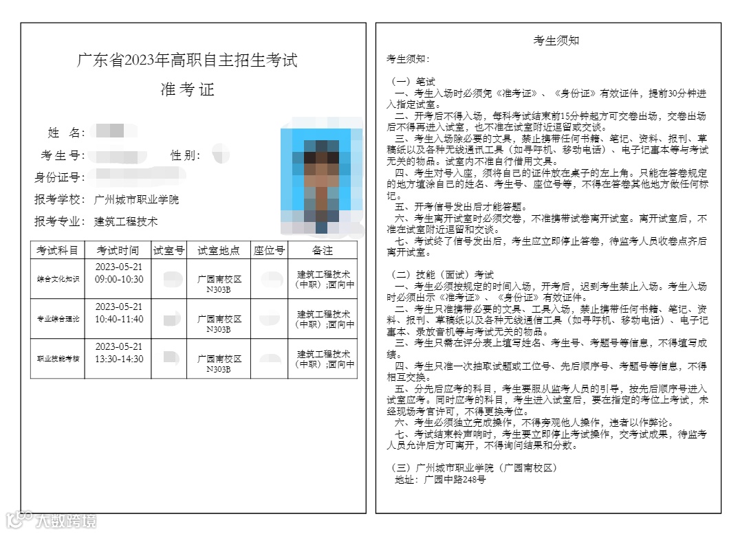 2023年自主招生准考证