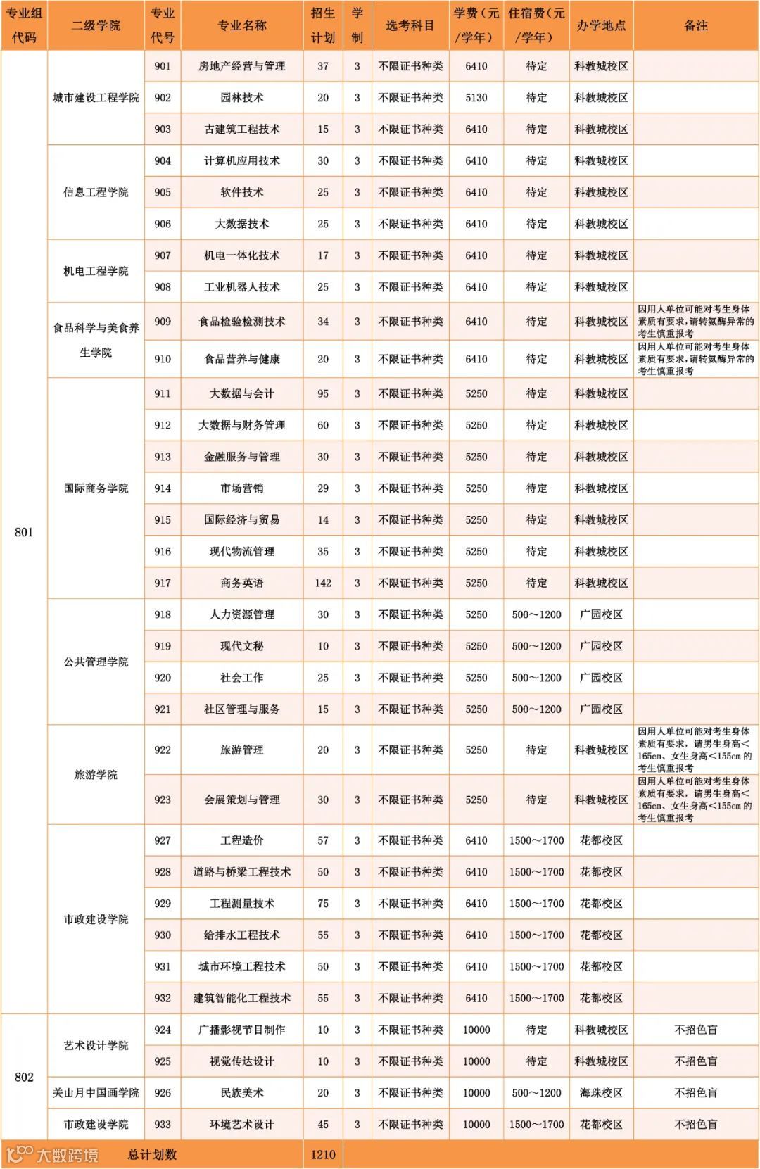 2023年“3+证书”各专业招生计划表