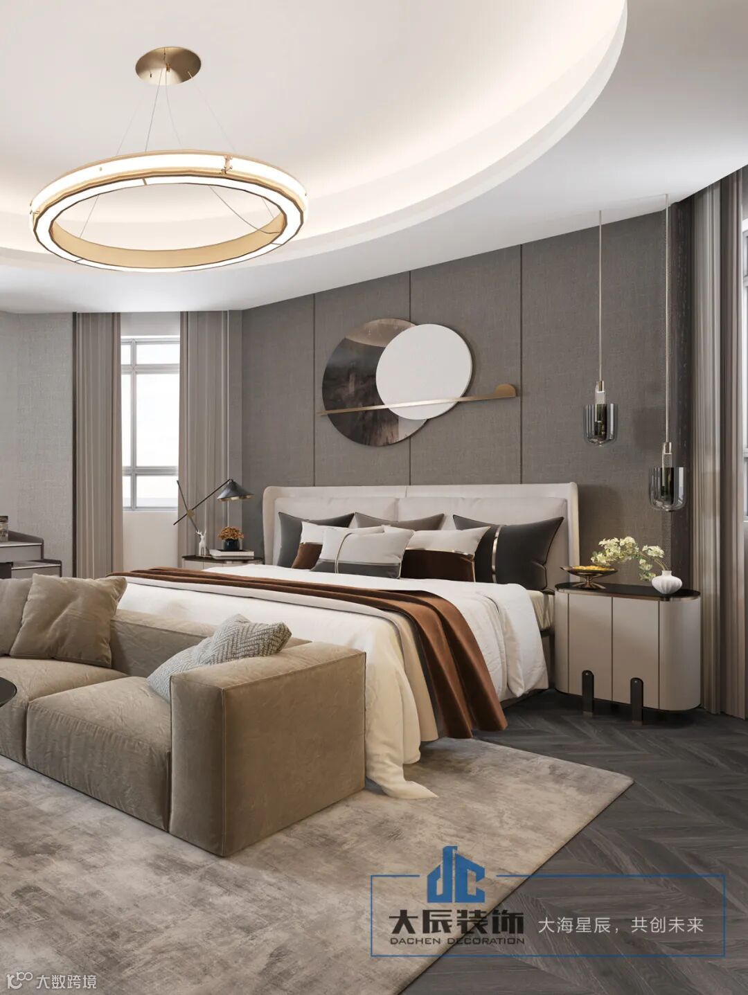 在软装方面,现代装修风格选用的产品多为造型简约的装饰品。家具和日用品多采用直线、玻璃、金属等材质,利用质感的丰盈和造型的简洁来达到空间的高级感。