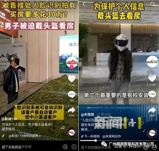 2020年11月,一名男子戴着头盔看房的视频引起了网上热议,背后的原因则是因为很多售楼处都装了人脸识别系统,甚至戴着口罩也能人脸识别。