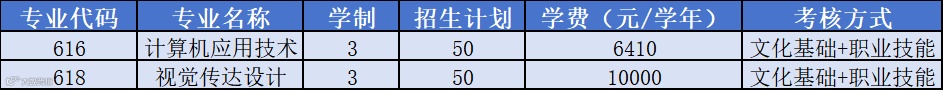 1.实行“文化基础(含综合文化知识和专业综合理论)+职业技能”的考核方式,综合文化知识和专业综合理论、职业技能考核占比例为4:3:3。考生入学考核总分满分值为500分,其中综合文化知识考试满分值为200分,专业综合理论考试满分值为150分,职业技能考核满分值为150分,总分合成方式为“文化基础考核成绩+职业技能考核成绩”。