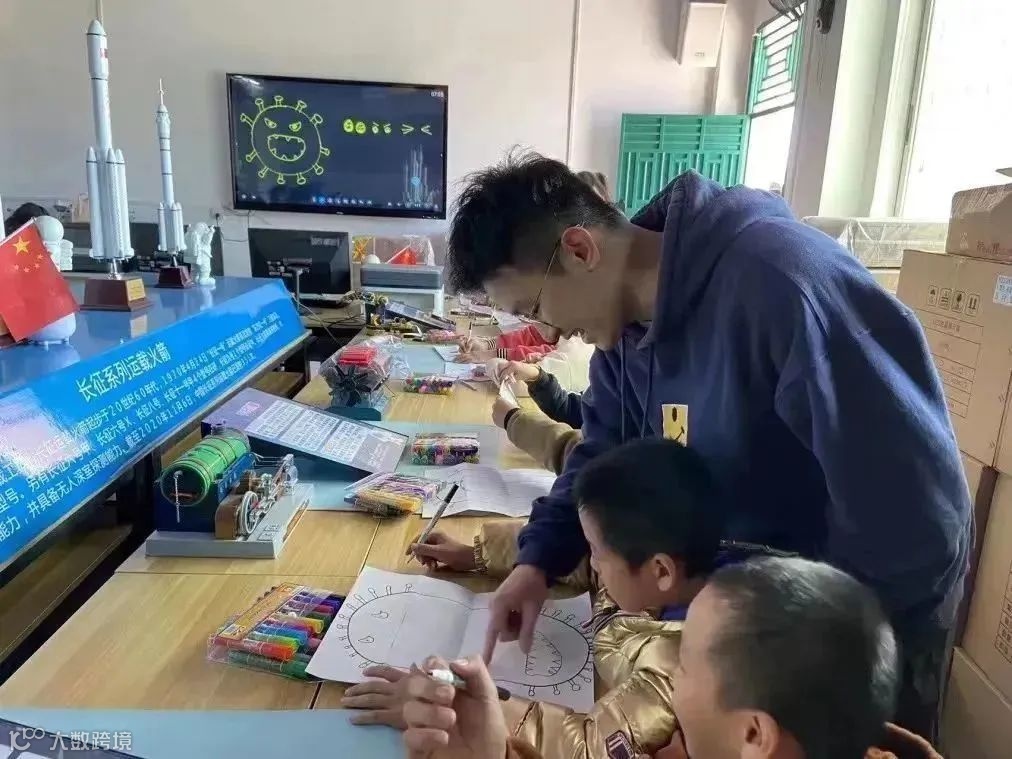 时光荏苒,第一节课的画面仿佛在昨天,学生们都在下面偷笑。这是李运发在期末最后一节课时与学生说话时的画面。