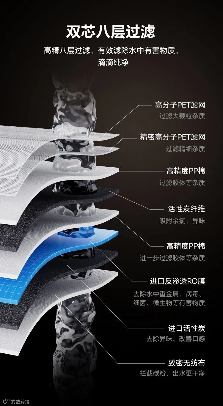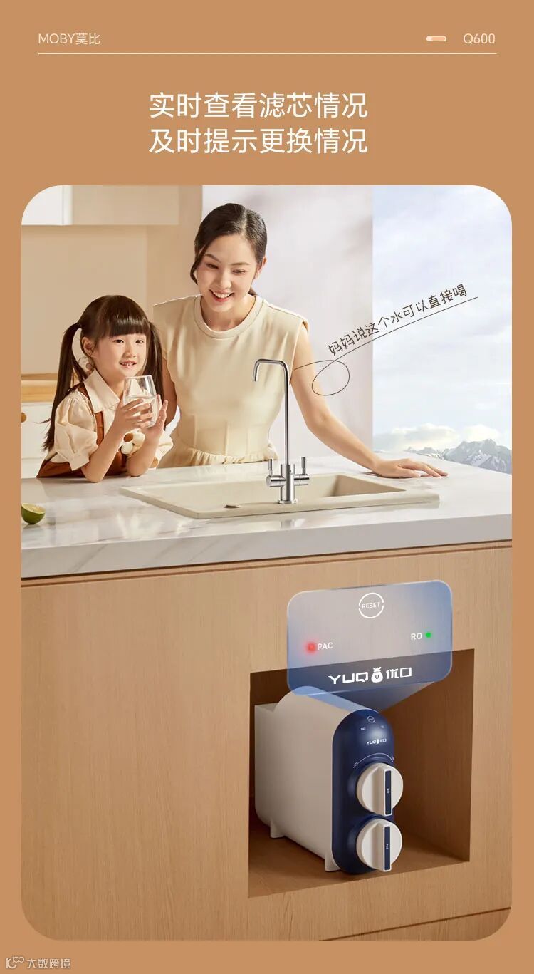 URO-Q600厨下直饮机,这款净水器采用先进的RO反渗透技术,过滤精度高达0.0001μm,双芯五级过滤系统能有效去除水中的微小颗粒和有害物质。这意味着,每一杯水都经过层层净化,纯净又健康。