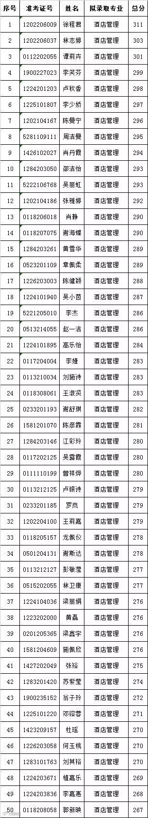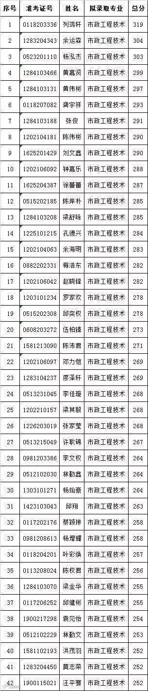 (1)酒店管理、食品生物技术、市政工程技术专业考生文化素质考试采用学业水平考试语文、数学、英语三门成绩,满分300分;职业适应性测试由我院自主命题和组织实施,满分100分。普通高中考生入学测试总分满分值为400分。