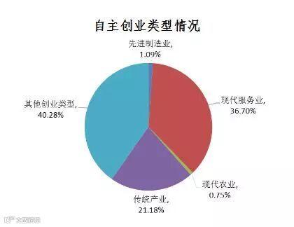 按创业类型分,现代服务业占36.70%,传统产业创业占21.18%。