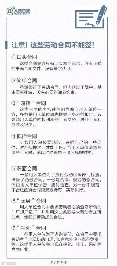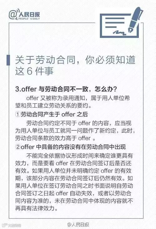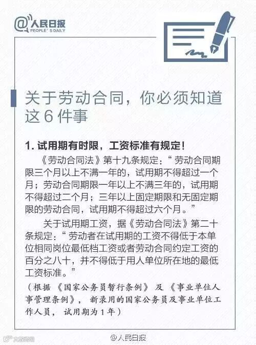 求职找工作,不少人拿到劳动合同的那刻,可能连合同内容都没看清,就挥着笔杆子“签签签”。别急!劳动合同包含哪些条款你清楚吗?试用期工资标准有哪些规定?……戳图了解,关于劳动合同,你必须知道这6件事。