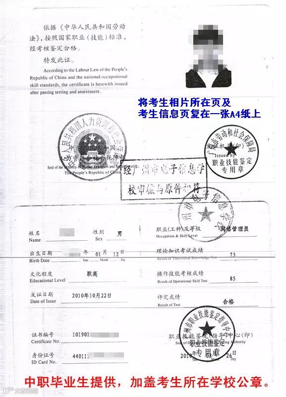 3、注明所读专业名称的中等职业学校应届毕业生证明原件或毕业证书复印件