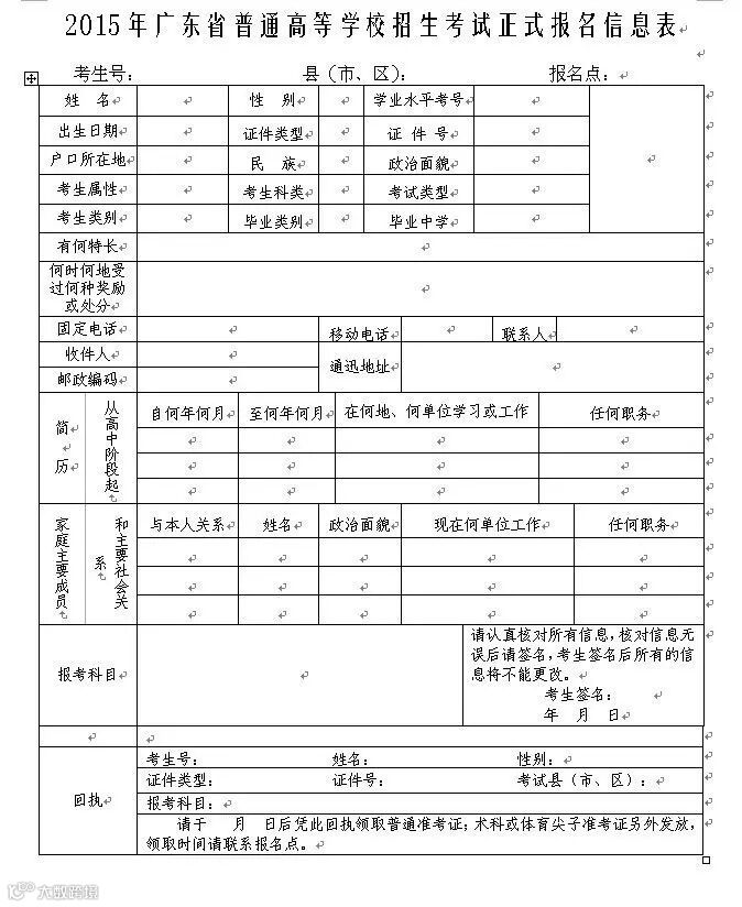 1、《2016年广东省普通高等学校招生考试正式报名信息表》