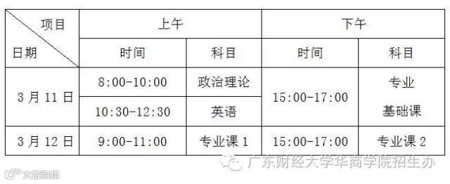 招生考试时间表(北京时间)