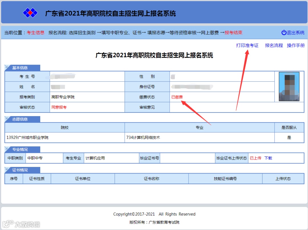 考生使用本人考生号及密码登录自主招生报名系统(建议使用谷歌浏览器)自行打印准考证。
