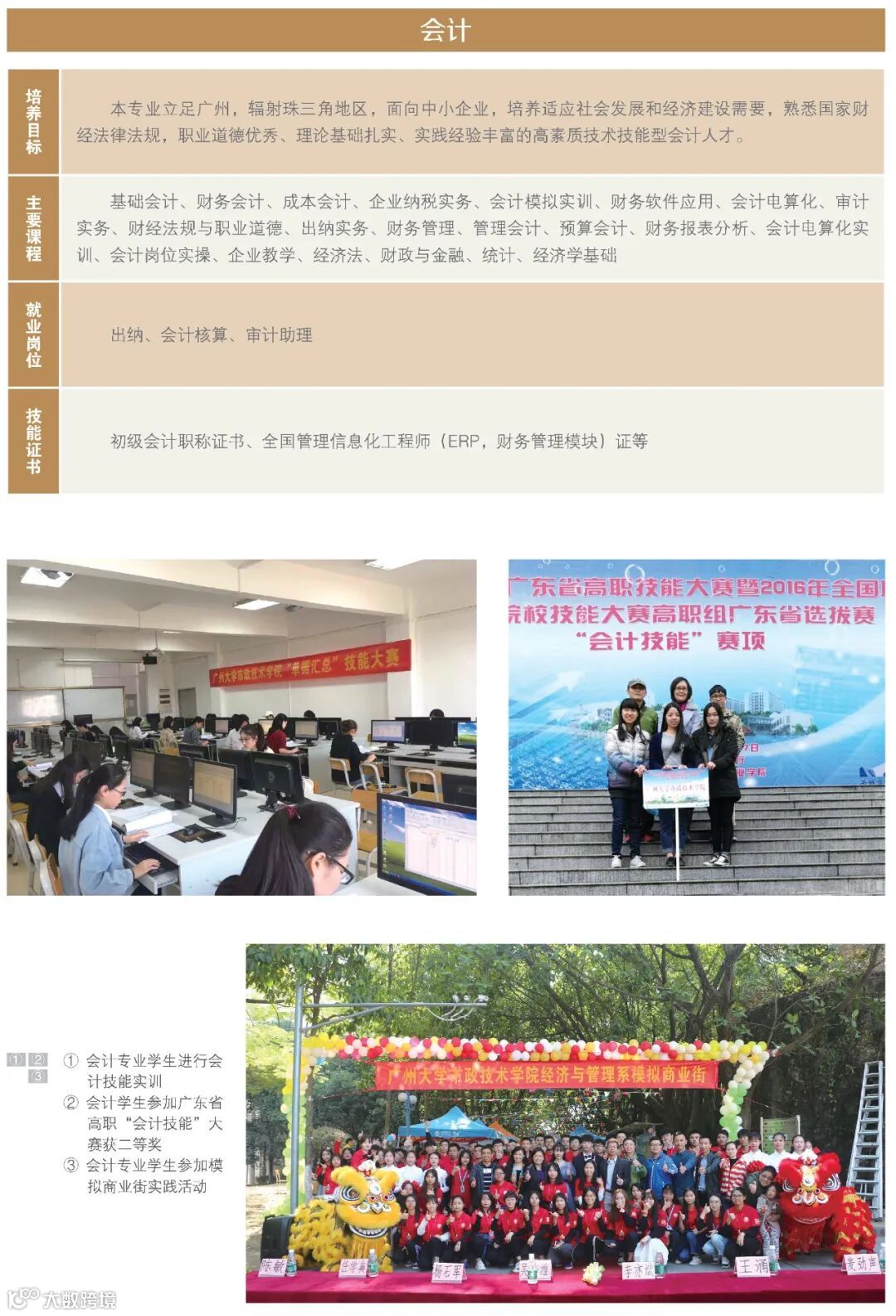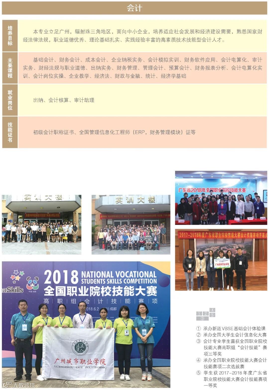 “会计专业及专业群”为“省示范性高职院校”建设项目的重点建设专业(群),“会计专业教学团队”为省高职教育优秀教学团队,“财会综合实训基地”为省示范性实训基地,“广州安晟达保险代理有限公司金融保险专业校外实践教学基地”为省大学生校外实践教学基地,“财务软件应用”、“审计实务”为省精品资源共享课,“会计电算化”为省精品视频公开课;会计、财务管理两个专业为广州市示范性专业。