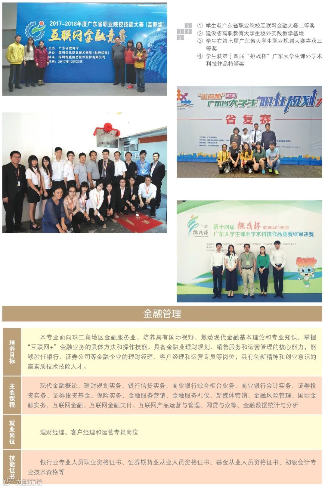 学生获“2017年全国职业院校创业技能大赛企业经营管理沙盘模拟赛项”全国总决赛团体一等奖、2018年全国职业院校技能大赛高职组“会计技能”赛项团体三等奖(全国第28名)、2017-2018年广东省职业院校技能大赛“会计技能”赛项团体一等奖(全省第1名)、2018年第十二届广东大中专学生科技学术节之“新道杯”广东大学生企业经营模拟沙盘大赛一等奖、第十四届“挑战杯”广东大学生课外学术科技作品特等奖等国家和省级竞赛奖项。