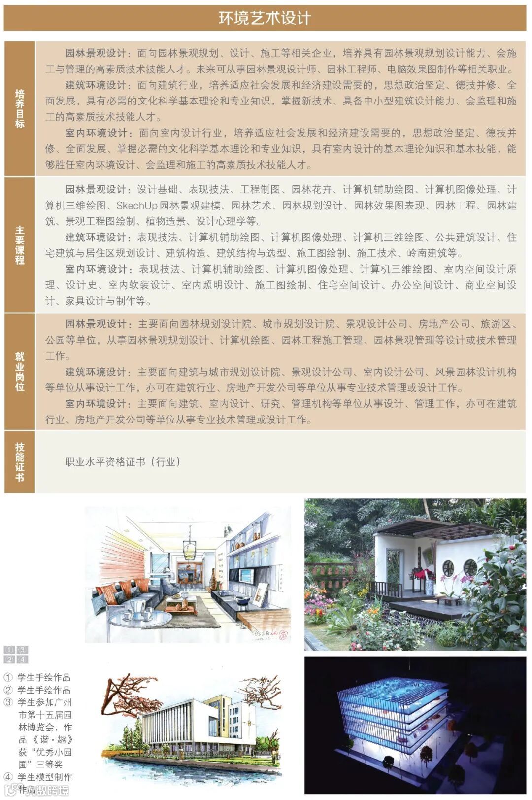 艺术设计系通过高考、学考、3+证书、自主招生及三二贯通等多种方式面向普通高中及职业中学招收应往届毕业生。学生取得职业技能证和毕业证实现“双证”毕业。通过在广州电视台、广东电视台、腾讯大粤网等主流媒体及国际4A广告公司等大型设计、影视、传媒企业实施企业教学与顶岗实习,毕业生就业率高,薪酬待遇好。艺术设计系还先后派遣学生前往马来西亚、台湾等高校交流学习,实施学分互认、双校毕业,同时也跟广州多家知名本科院校开展专升本合作。艺术设计系还特别重视开展创新创业教育,成功孵化多个学生创新创业工作室,取得众多省市级创业竞赛,获得省市多项创业资金支持,扶持多名在校生成功创立创意企业。