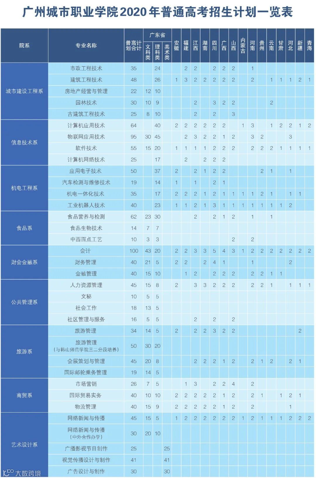广州城市职业学院2020年广东省普通高考招生计划(中外合作办学)