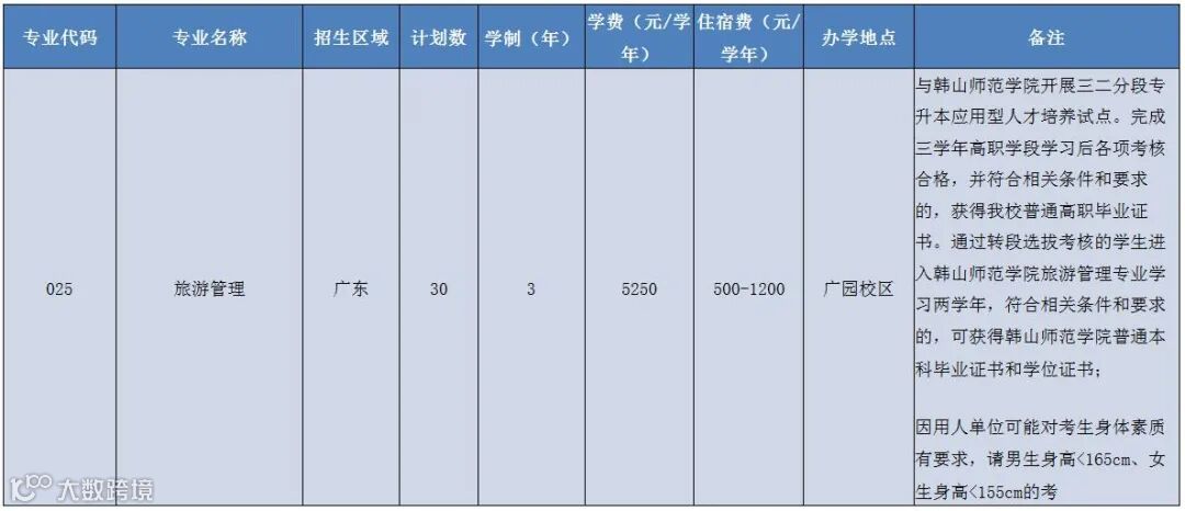 *以下各招生专业、招生区域、学费、专业代码(填报志愿代码)、计划数等信息仅供参考,最终以广东省教育考试院公布的