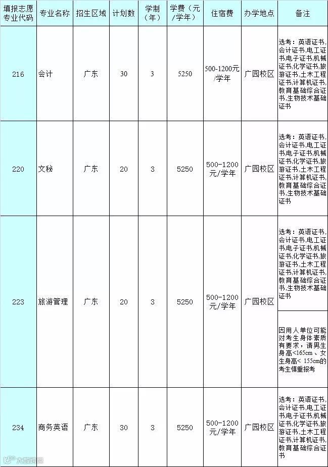 以上各招生专业、招生区域、学费、报考代码(填报志愿代码)、计划数等信息仅供参考,最终以广东省教育考试院公布的《广东省2018年招生专业目录》为准。