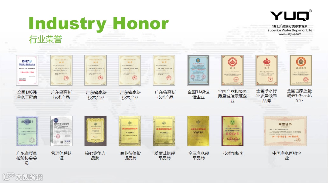 优口作为一家拥有全线水净化技术的高新技术企业,拥有企业资质、近200项的技术专利、行业荣誉187项,在编制工作中严谨、认真、专业地对标准内容进行编写。优口是一家拥有全线水净化技术,集家庭生活饮用水、商务公共场所饮水、工业生产用水技术研发与设备生产于一体的高新技术企业, 优口已经在中国建立了完善的研发、生产、销售及服务一体化的现代化管理体系,产品涵盖民用、商用、工业用三大领域(家用全屋分质净水系统、商用净饮水系统、大型水处理系统)。目前集团旗下有13家成员企业,3个研发中心(纽约、上海、佛山),5家销售子公司,1000+合作商,5000+服务人员。