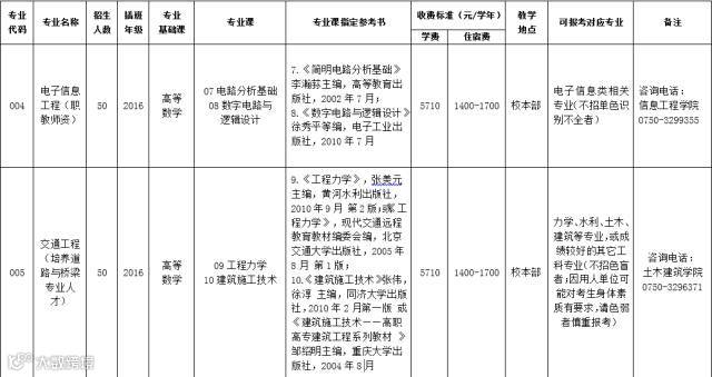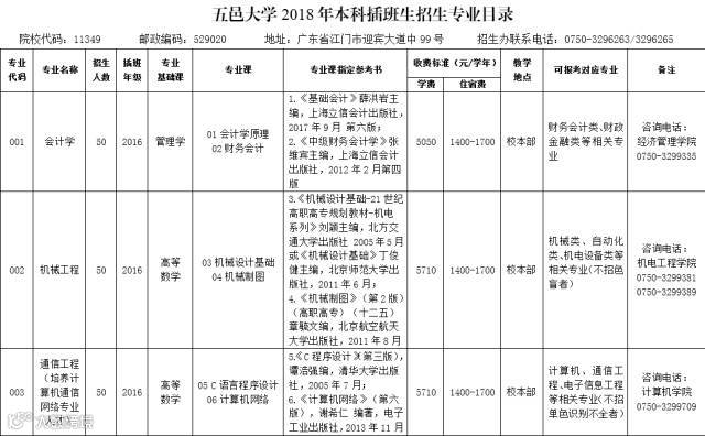 五邑大学2018年本科插班生招生专业目录