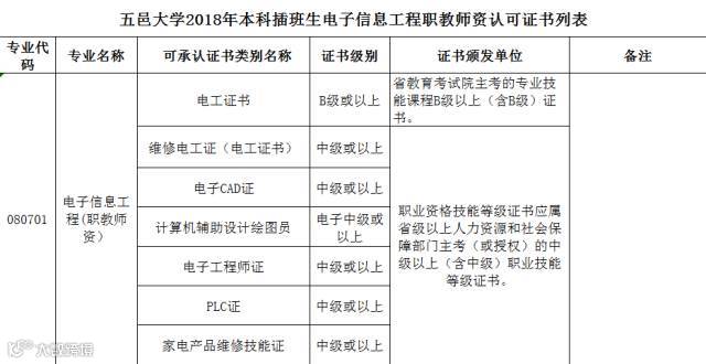 附件:五邑大学2018年本科插班生电子信息工程职教师资认可证书列表