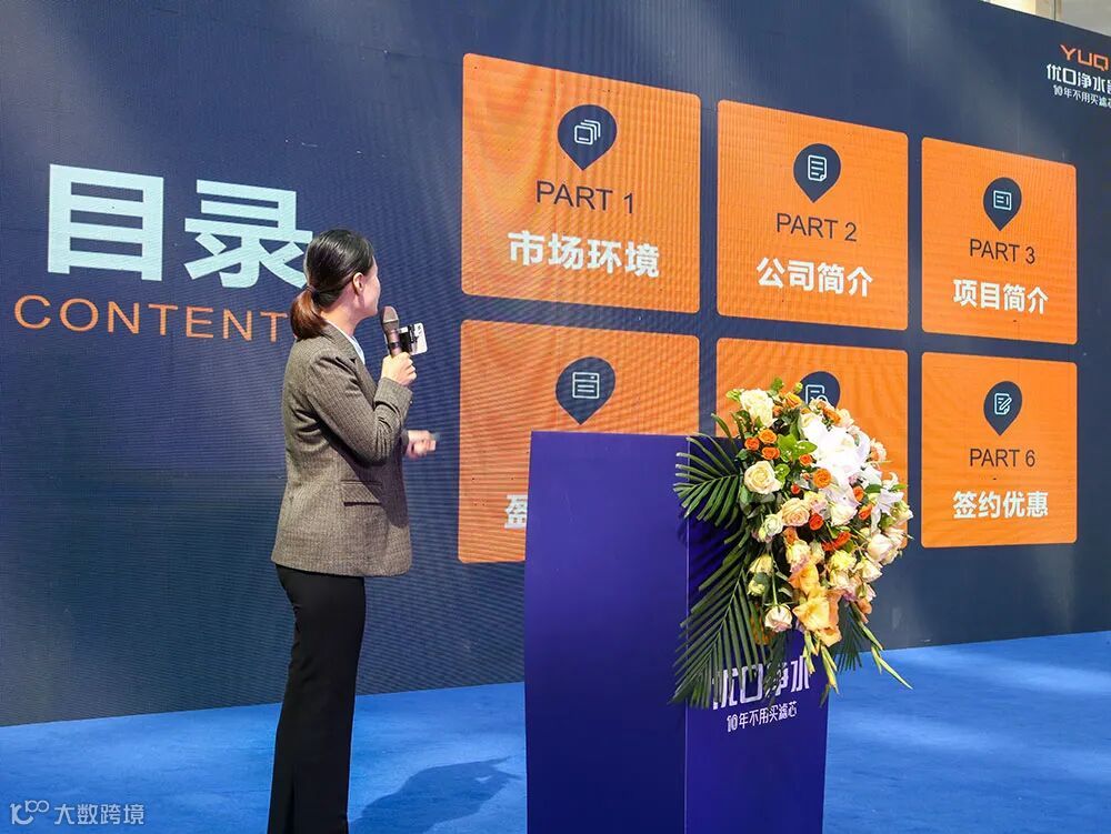 伴随着热烈的掌声,优口净水(中国)运营总部[优口集团]招商总监成旭苗女士上台,通过简介、清晰的演讲对市场情况进行深度分析,以及对优口品牌优势进行深度解读。让在座的朋友们对优口整个未来规划有了更加清晰的认知。