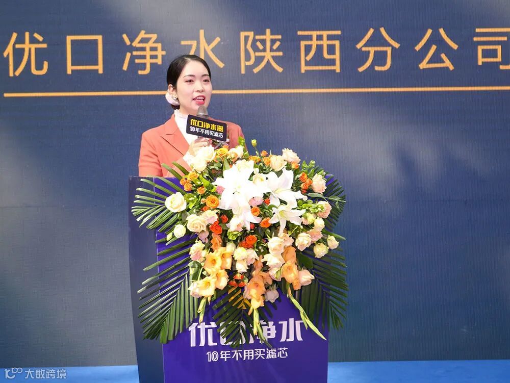 优口净水陕西分公司总经理黄微女士上台致辞,表达了对各位嘉宾的诚挚的欢迎和感谢。