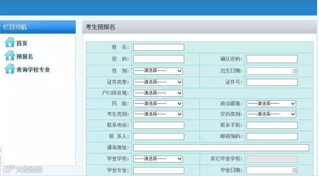 (广东省本科插班生网上报名系统界面)