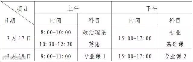 普通高校本科插班生招生考试时间为2018年3月17日(星期六)至18日(星期日)两天,具体安排见下表: