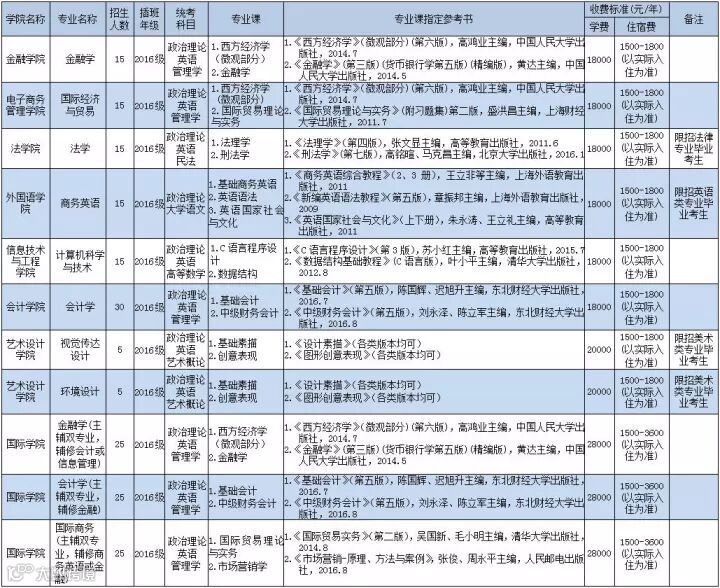 广州商学院2018年本科插班生招生专业目录